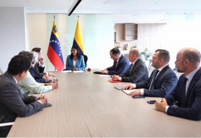 El ministro de Minas y Energía de Colombia, Edwin Palma, mantiene contacto con la vicepresidenta Delcy Rodríguez (Foto PDVSA)