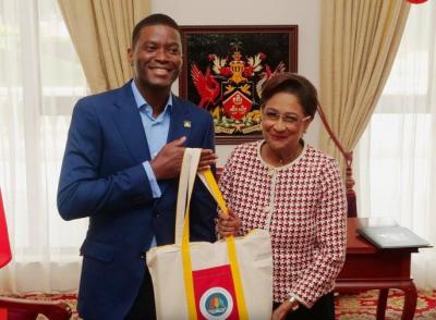 El primer ministro de Grenada, Dickon Mitchell, durante el encuentro que sostuvo en Puerto España con Kamla Persad-Bissessar (Oficina del Primer Ministro de Trinidad y Tobago)