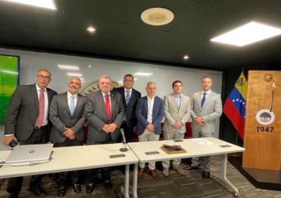 La directiva de la Bolsa de Valores de Caracas junto a la del Fondo Petrolía (Foto Bolsa de Valores de Caracas)